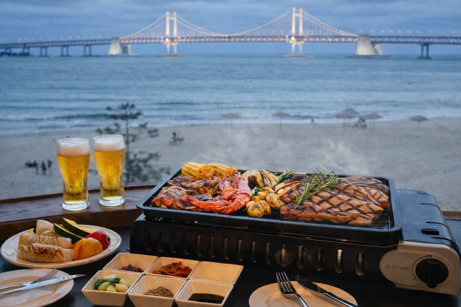 탁 트인 바다 전망을 배경으로 프리미엄 BBQ 다이닝의 품격을 경험해 보세요.