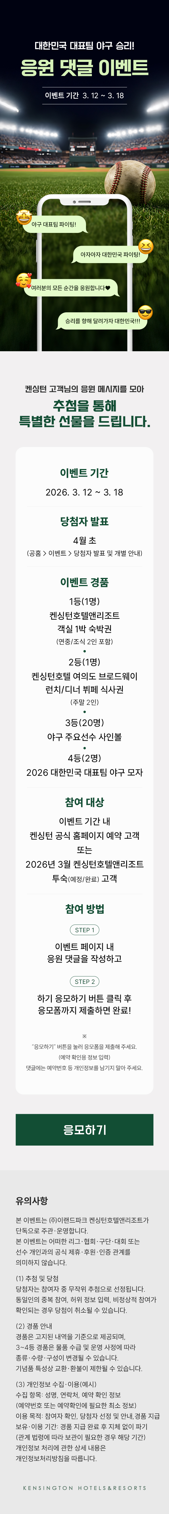 공유하기대한민국 대표팀 야구 승리를 응원하는 댓글 이벤트를 진행합니다.